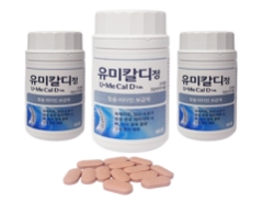 2925년 12월 1일 급여 고시 제품명 ? 유미칼디정 출시 ??성분? 시트르산칼슘수화물 475밀리그램 / 콜레칼시페롤농축분말 10밀리그램 / 폴산 1밀리그램 / 티아민염산염 10밀리그램? 성상? 분홍색의 장방형 필름코팅정 효능효과? ○ 다음 경우의 비타민 D, B1,의 보급- 육체피로- 임신·수유기- 병중·병후(병을 앓는 동안이나 회복 후)의 체력저하 시- 발육기- 노년기○ 이 약에 함유된 비타민 등의 효능·효과는 다음과 같다.- 뼈, 이의 발육불량- 구루병의 예방 용법용량 ? 성인 : 1일 1회, 1회 1정 복용한다.? 저장방법 ? 밀폐용기, 실온(1 ~ 30℃) 보관? 포장단위 30 정/병,90 정/병?사용기간 제조일로부터 36 개월??